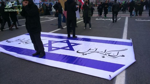 پرچم رژیم صهیونیستی زیر پای راهپیماییکنندگان تهرانی