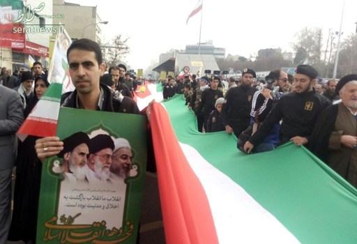 حضور روحانی رئیسجمهور در مراسم راهیمایی 22 بهمن. وی از تقاطع حافظ به سمت چهارراه ولیعصر در مراسم 22 بهمن شرکت کرده است