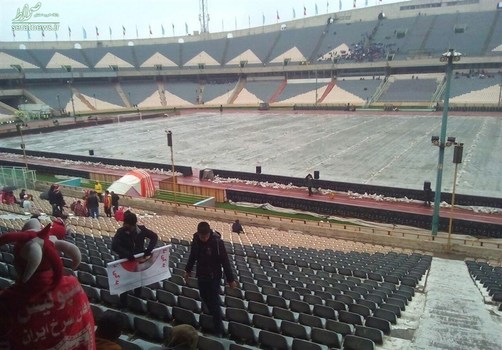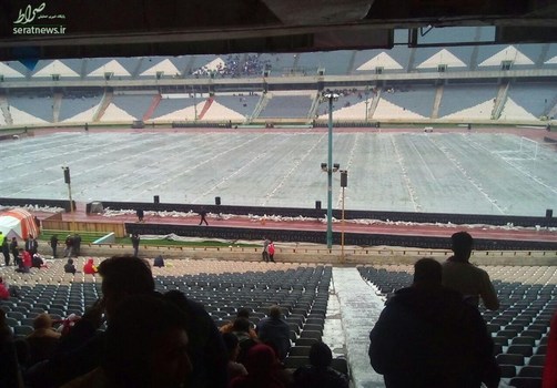 * زمین چمن ورزشگاه آزادی کاورکشی شده است تا پیش از شروع بازی بارش باران روی کیفیت چمن تأثیری نگذارد.