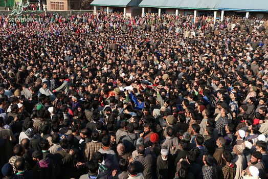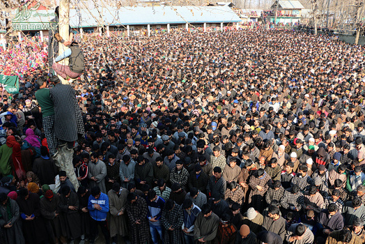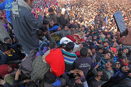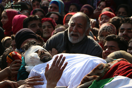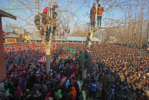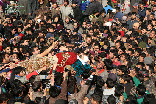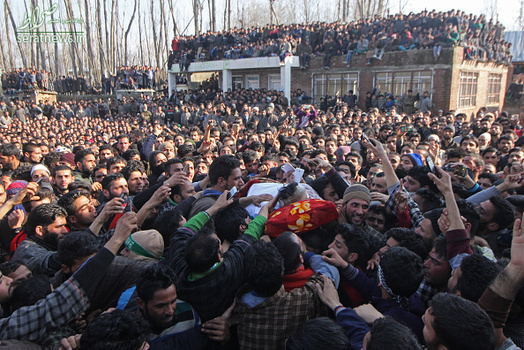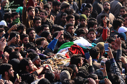 مراسم تشییع جنازه  Mudasir Ahmed یکی از مبارزان جدایی طلب کشمیر که به همراه سه نفر دیگر از مبارزان کشمیری در درگیری با نیروهای ارتش هند در روستای پریسال در جنوب کشمیر کشته شد با حضور هزاران نفر از مردم کشمیر برگزار شد. در درگیری روز گذشته دو تن از نیروهای هندی نیز کشته شدند.