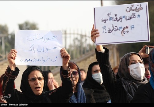 تجمع مردم اهواز در خصوص قطع آب ، برق و ریزگردها