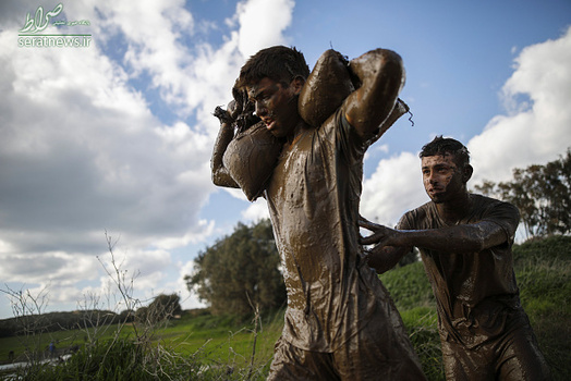 دختران و پسران نوجوان اسرائیلی برای خدمت در ارتش رژیم صهیونیستی در یک رقابت سالانه آمادگی جسمانی در نزدیکی منطقه کیبوتص شرکت میکنند. در این رقابت طاقت فرسا کیسههایی از شن خیس بر روی کول آنان سوار شده و مجبورند مسافت زیادی را در دشت، باتلاق و موانع سخت طی کنند. خدمت سربازی در ارتش رژیم صهیونیستی اجباری است.