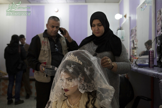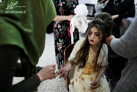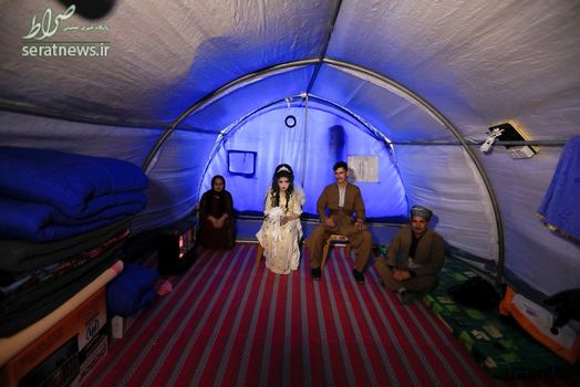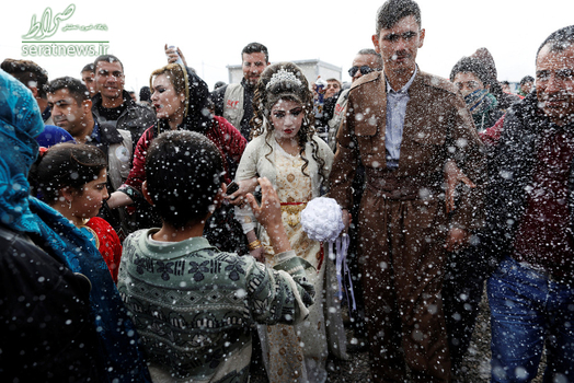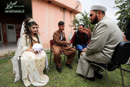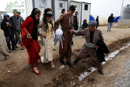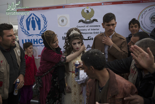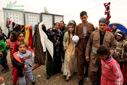 مراسم جشن عروسی حسین زینو و شهد احمد عابد پسر و دختر آواره موصلی در اردوگاه آوارگان الخازر در شرق موصل برگزار شد. حسین و شهد ماه گذشته از خانه و کاشانه خود در موصل آواره شدند. حسین 25 و شهد 15 ساله هستند.