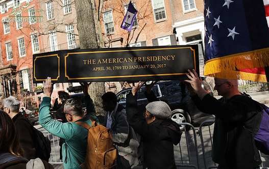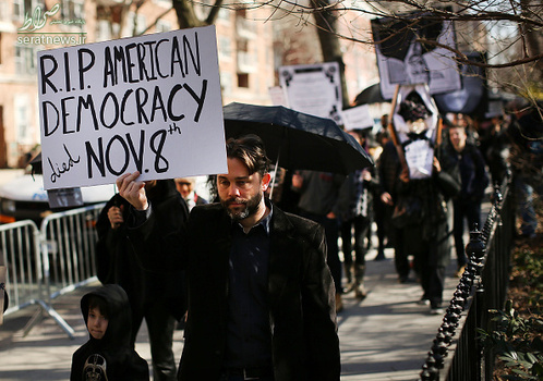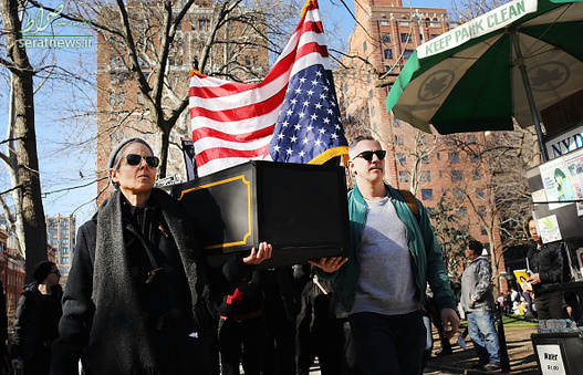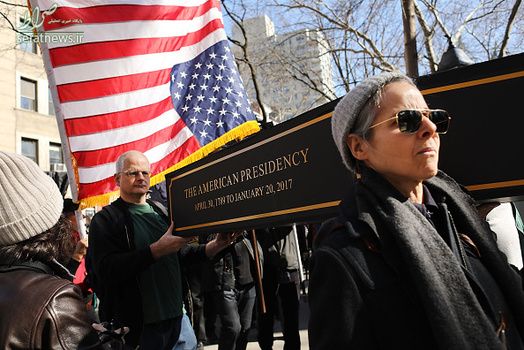 مخالفان دونالد ترامپ رییس جمهور آمریکا با پوشیدن لباس سیاه و آماده سازی یک تابوت سیاه رنگ که بر روی آن عبارت "ریاست جمهوری آمریکا، تاریخ تولد آوریل سال ۱۷۸۹ و تاریخ وفات بیستم ژانویه سال ۲۰۱۷" نوشته شده بود مراسم نمادین مرگ ریاست جمهوری این کشور را در شهر نیویورک برگزار کردند.