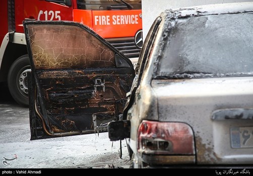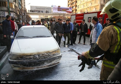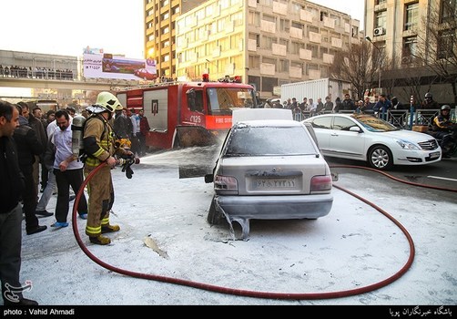 تصاویر/ آتش سوزی خودرو در میدان هفتم تیر