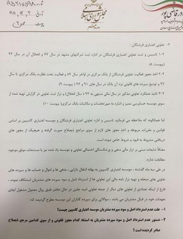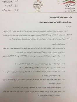 در ادامه تصاویر نامه قاضی پور به رئیس کل بانک مرکزی درباره وضعیت موسسه کاسپین را مشاهده می کنید؛