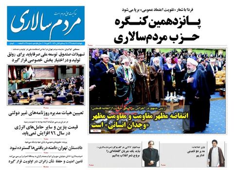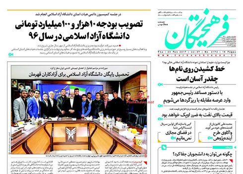 صفحه اول روزنامه های پنجشنبه ۵ اسفند