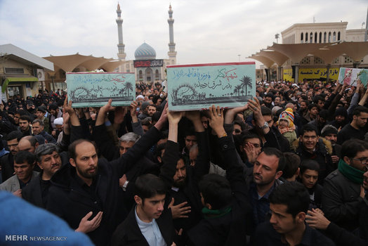 مراسم تشییع ۵ شهید گمنام و ۳ شهید مدافع حرم صبح امروز پنجشنبه و همزمان با سالروز شهادت حضرت زهرا (س) با حضور گسترده مردم در قم برگزار شد.