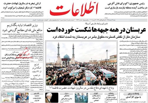 صفحه اول روزنامه های شنبه ۱۴ اسفند