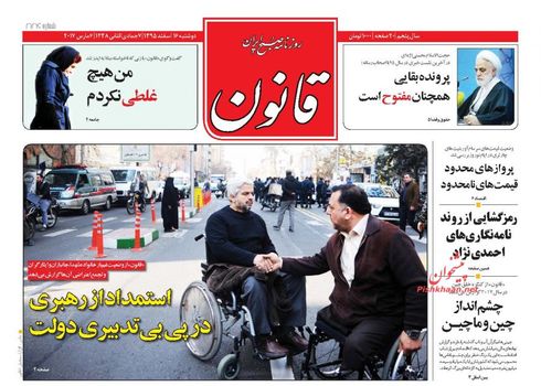 ه اول روزنامه های دوشنبه ۱۶ اسفند