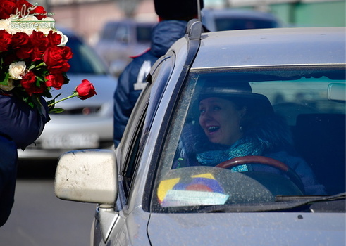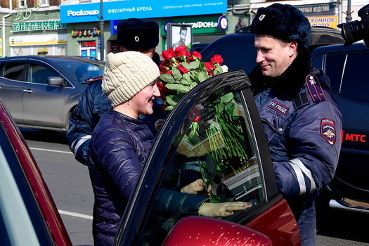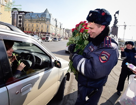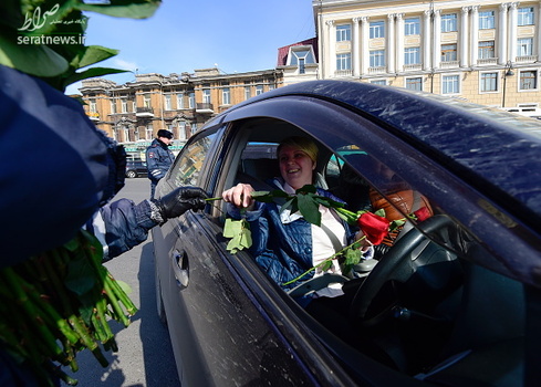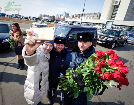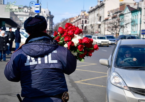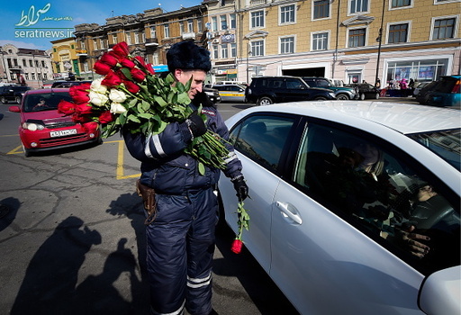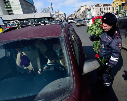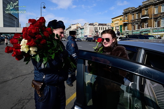 پلیسهای ترافیک در شهر ولادیوستوک جنوبی ترین نقطه روسیه در آستانه روز جهانی زن به رانندگان زن گل قرمز اهدا کردند. 8 مار روز جهانی زنان نامگذاری شده است.