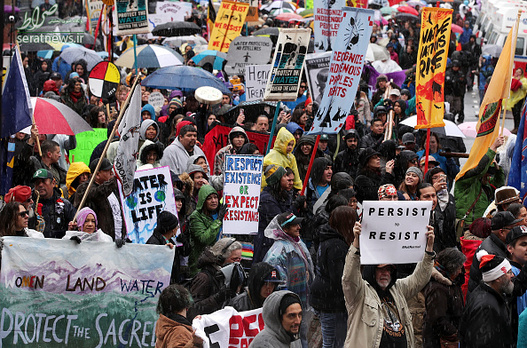 هزاران نفر از شهروندان بومی آمریکا در اعتراض به ادامه ساخت خط لولههای نفتی داکوتا اکسس و کیاستو اکسال مقابل کاخ سفید تجمع کردند. این خط لوله 1400 کیلومتری، قرار است نفت را از آلبرتا در کانادا به ایالت نبراسکای آمریکا ببرد تا نفت از آنجا از طریق خط لوله های موجود در آمریکا به تگزاس و خلیج مکزیک منتقل شود. دونالد ترامپ چند روز پس از ورود به کاخ سفید با امضای فرمانی اجرایی، حمایت خود را از دو خط لوله جنجال برانگیز اعلام کرد.