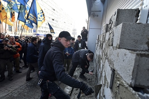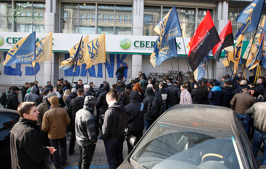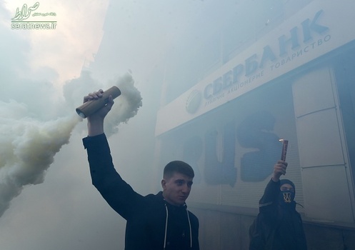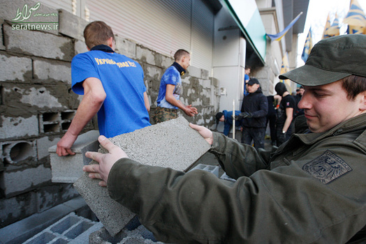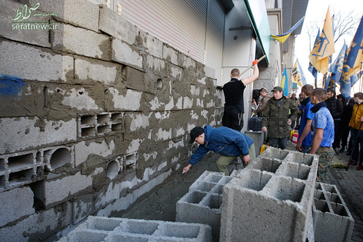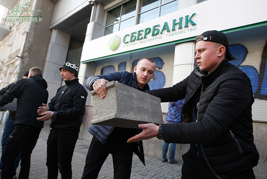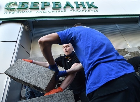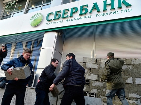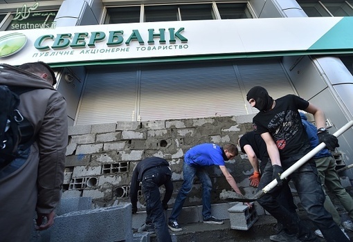 گروهی از جوانان اوکراینی با تجمع مقابل اسبربانک (بانک پسانداز فدراسیون روسیه) در شهر کییف اقدام به بستن این بانک به وسیله بلوکهای سیمانی کردند.