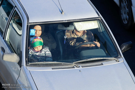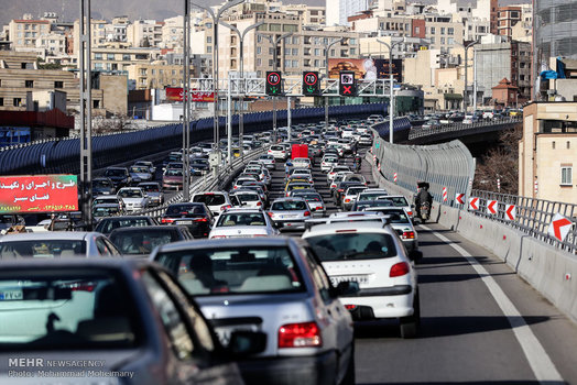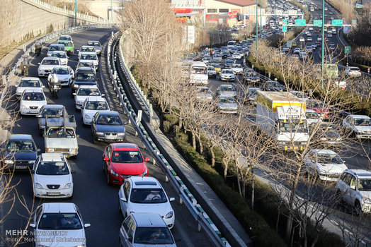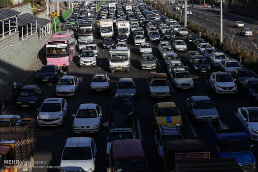 با نزدیک شدن به تعطیلات نوروزی ترافیک تهران دو چندان شده و مردم ساعات زیادی را در خیابان های پر ترافیک که در اکثر نقاط تهران مشاهده میشود مسیر خود را به کندی طی می کنند.