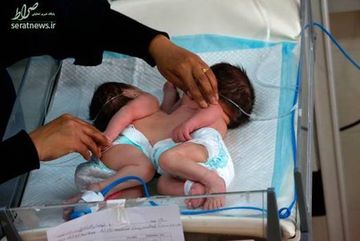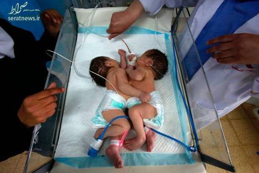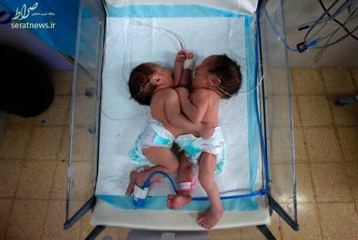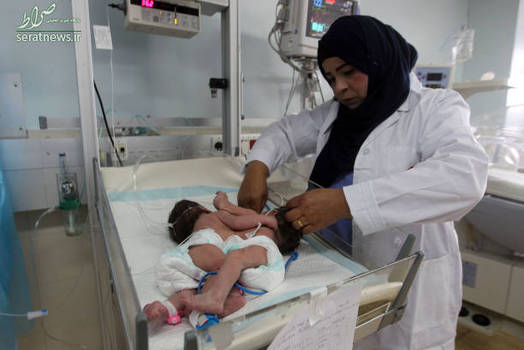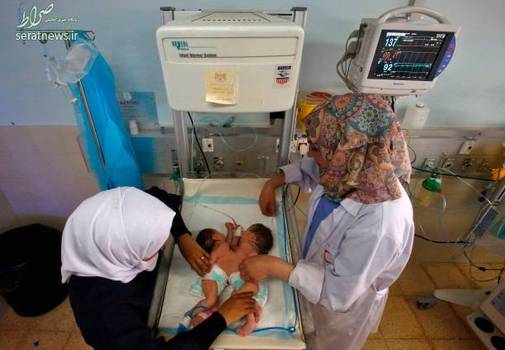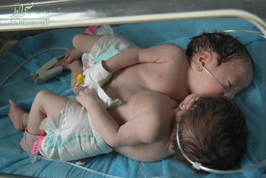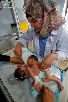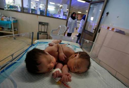 تصاویر/ دوقلوهای بهم چسبیده با یک قلب در غزه