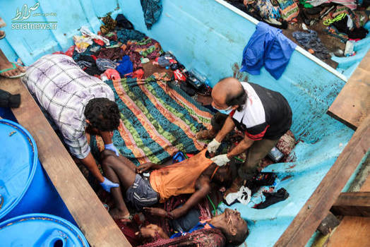 تصاویر/ حمله بالگرد سعودی به قایق پناهجویان سومالیایی