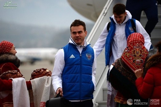 تصاویری از استقبال خاص از اعضای تیم ملی روسیه در فرودگاه سوچی را مشاهده می‌کنید: