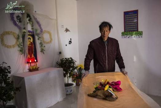 تصاویر/ مراسم کفن و دفن سگ در چین!