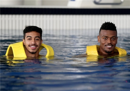 تیم فوتبال الاهلی امارات که دو روز پیش با پیروزی مقابل الشباب قهرمان جام حذفی لیگ امارات شده بود پس از استراحت یک روزه تمریناتش را از سر گرفت که این تمرینات به جای اینکه در زمین بازی باشد در استخر صورت گرفت. الاهلی یکی از رقبای استقلال در مرحله گروهی لیگ قهرمانان آسیا است. در بازی رفت نماینده امارات موفق شد شاگردان منصوریان را با نتیجه 2 بر یک شکست دهند.