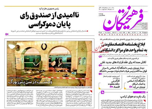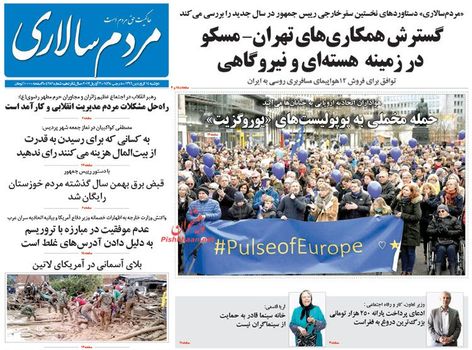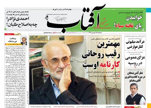 صفحه اول روزنامه های سهشنبه ۱۵ فروردين