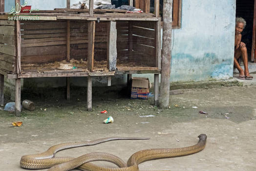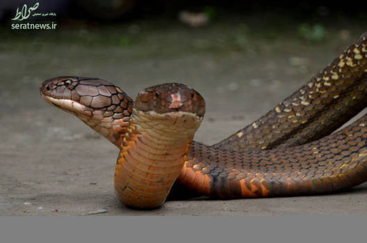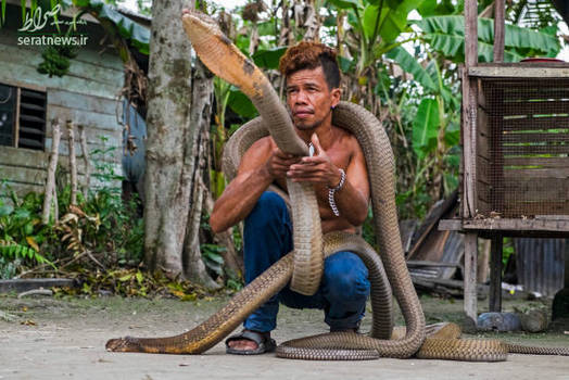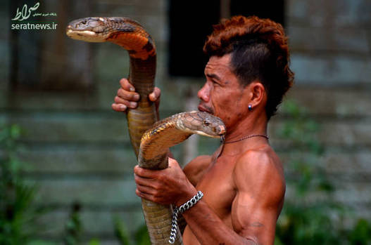 تصاویر/ حیوانات خانگی عجیب مرد اندونزیایی؛ دو مار کبرای 4 متری