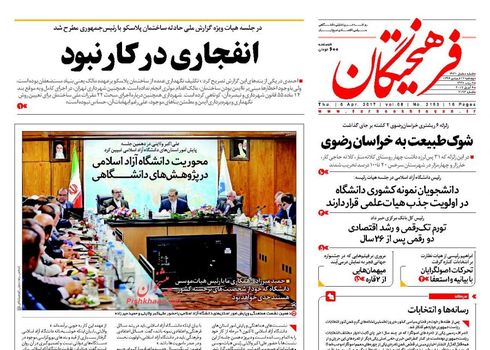 صفحه اول روزنامه های پنجشنبه ۱۷ فروردين