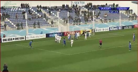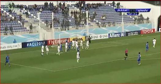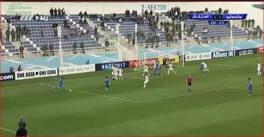 ضربه مهاجم استقلال اگرچه در ابتدا اوج زیادی گرفت و به سمت دروازه رفت، در ادامه با افت شدیدی به سمت دروازه رفت و در نزدیکی های محل تلاقی دیرک های عمودی و افقی دروازه فرود آمد و پس از بازگشت به زمین به اوت رفت.