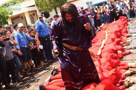 مردم منطقه ای در 83 کیلومتری غرب سان سالوادور پایتخت السالوادور در یک مراسم سنتی به نشانه آغاز هفته مقدس مسیحیان شلاق خوردند تا گناهنشان پاک شود. این اقدام توسط گروهی قرمزپوش صورت گرفت.