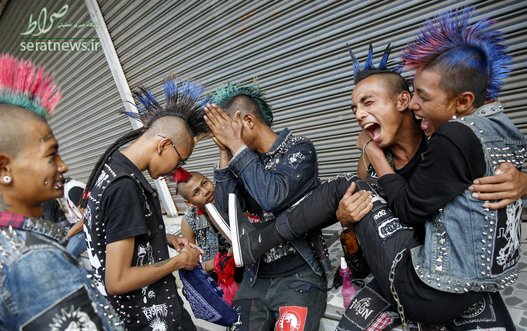 در جشنواره سالانه آب که در یانگون میانمار برگزار شد گروهی از جوانان میانماری با شکل و شمایل گروه های پانک حضور یافتند. آنان همچنین موهای خود را به شکل مدل موهاک که محبوبیت زیادی بین بسیاری از سلبریتی های دنیا دارد درآورده بودند.