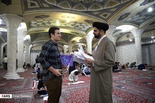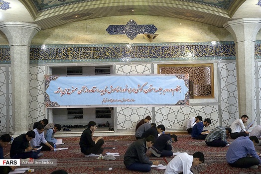 آزمون ورودي حوزه هاي علميه سراسر كشور در دو مقطع ديپلم و فارغ التحصيلان دانشگاهي ويژه برادران صبح امروز جمعه ٢٥ فرورين ماه در مسجد امام حسن عسگري و مدرسه فيضيه قم برگزار شد