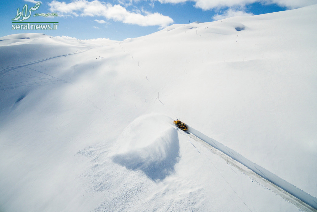 یک لودر در حال برف روبی و باز کردن یک جاده در منطقه ای کوهستانی در نروژ
