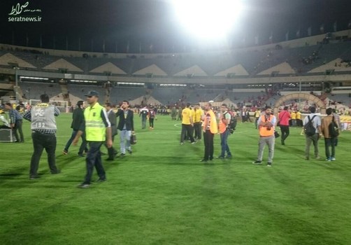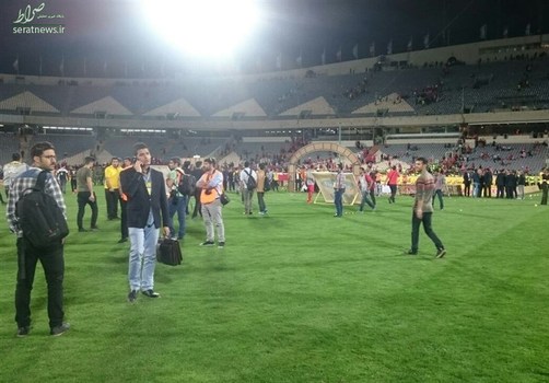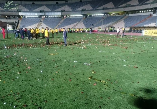 * به دلیل ورود افراد متفرقه به داخل چمن ورزشگاه آزادی، برخی از نقاط زمین آسیب دید.