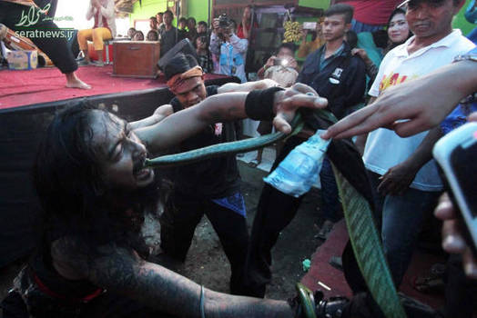 در منطقه بادونگ اندونزی گروهی با برگزاری یک سیرک خیابانی مارهای سمی را در دهان خود فرو می‌کنند. این افراد که ظاهرا نیش زدن مار روی آنها تأثیری نمی‌گذارد طرفداران زیادی در این منطقه پیدا کرده‌اند. هر کدام از آنها که توسط مار نیش زده می‌شود اقدام به نوشیدن آب نارگیل می‌کند، آنها می‌گویند آب نارگیل سبب خنثی سازی نیش مار می‌شود.