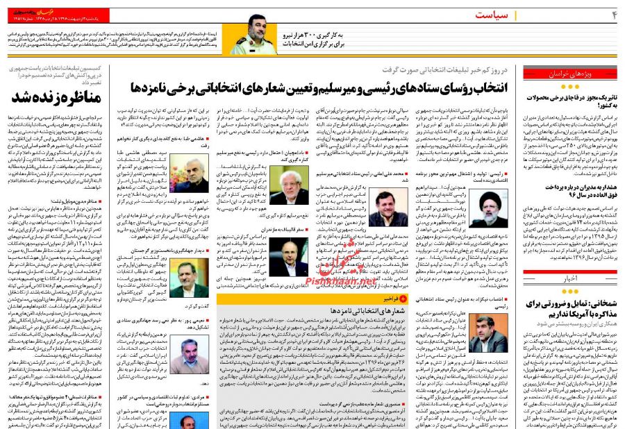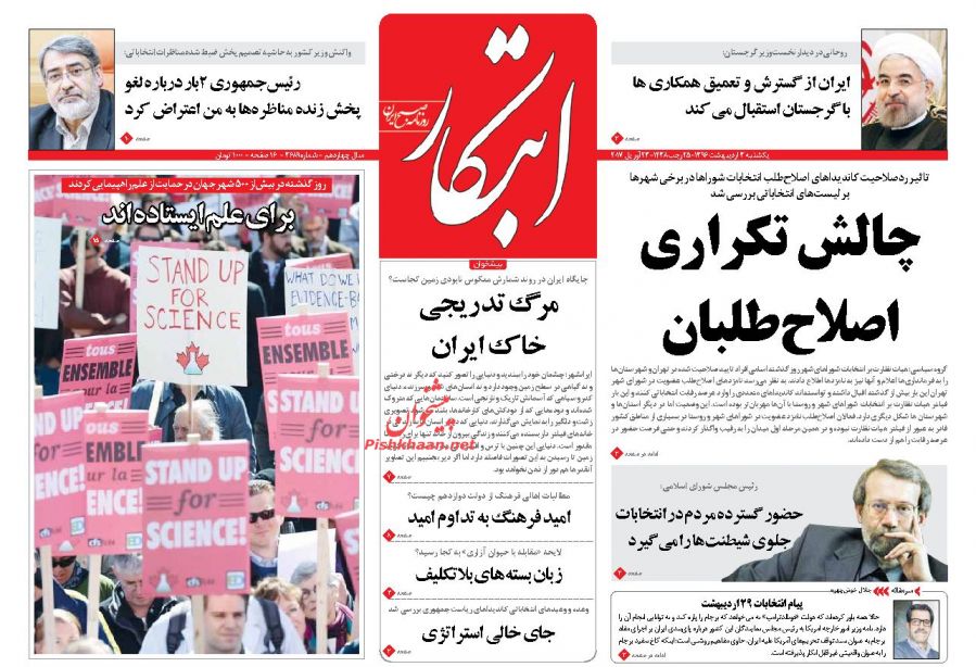 صفحه اول روزنامه های یکشنبه ۳ ارديبهشت