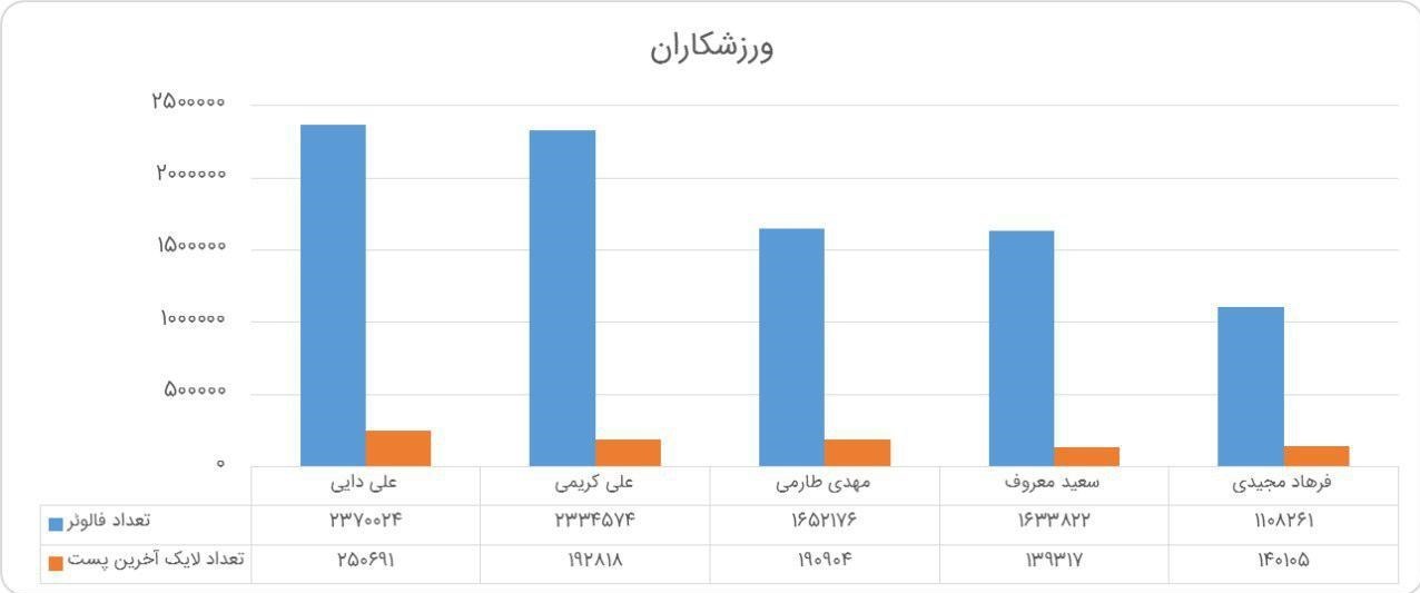 در ادامه از سه گروه ورزشکاران، خوانندگان و بازیگران، پر طرفدارترین آنها را براساس بیشترین تعداد فالوئر انتخاب کرده ایم.