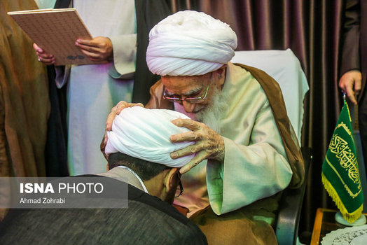 صبح امروز (۵ اردیبهشت ماه) در روز مبعث پیامبر گرامی اسلام حضرت محمد(ص) تعدادی از طلاب توسط آیت الله صافی گلپایگانی معمم شدند