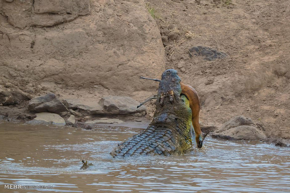 این تصاویر که در منطقه حفاظت شده ماسایی مارای کنیا گرفته شده، لحظه شکار یک غزال به دست یک کروکدیل گرسنه ۱۶ فوتی را به نمایش می گذارد.