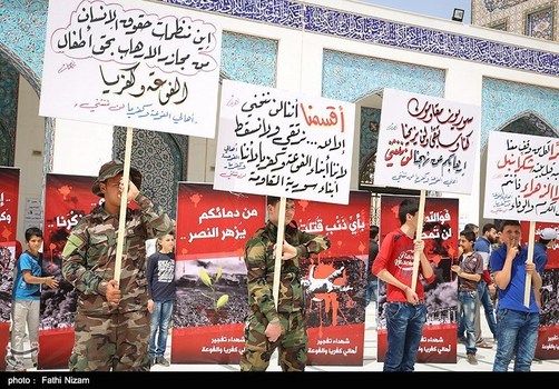 به گزارش تسنیم از دمشق،‌پیکرهای شهدای مظلوم کفریا و فوعه که در جنایت هولناک تروریست‌های تکفیری در منطقه اشغالی الراشدین در روز شنبه 26 فروردین به خیل قربانیان بیگناه حملات تروریستی پیوستند،‌ در یک مراسم باشکوه در حرم مطهر حضرت زینب(س) تشییع و پس از اقامه نماز بر آنها در جوار حرم مطهر عقیله بنی‌هاشم به خاک سپرده شدند. بیشتر این شهدا، کودک بودند.