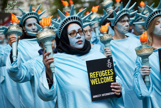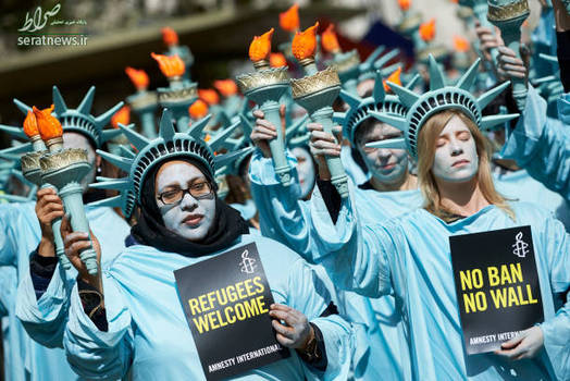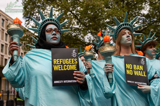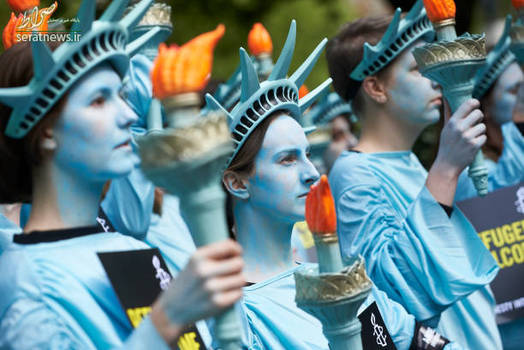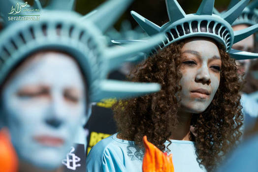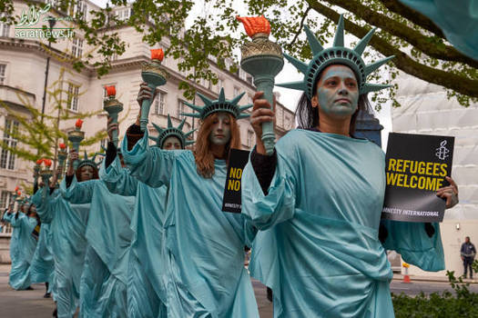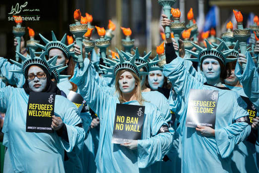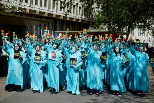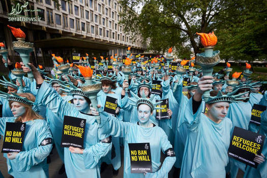 به مناسبت صدمین روز ورود دونالد ترامپ رییس جمهور آمریکا با کاخ سفید که با اعمال سیاستهای جنجالی از سوی وی همراه بوده گروهی از زنان فعال سازمان عفو بین الملل در لندن پایتخت انگلیس دست به تظاهرات زدند. این فعالان که ظاهر خود را شبیه به مجسمه معروف آزادی کرده بودند مقابل سفارت آمریکا در لندن علیه ترامپ شعار سرداده و اقدامات مهاجرتی وی را محکوم کردند.