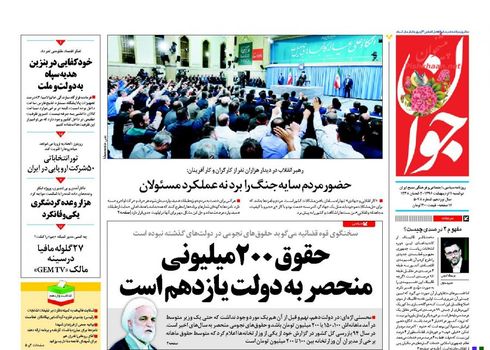 صفحه اول روزنامه های دوشنبه ۱۱ ارديبهشت