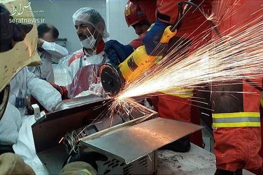 قسمت هایی از این چرخ گوشت سنگین را جدا کردند و مصدوم را برای انتقال به