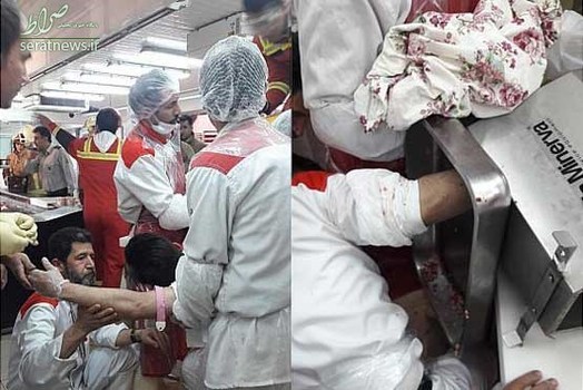 دست راست وی بر اثر بی احتیاطی و رعایت نکردن اصول ایمنی درون این چرخ گوشت