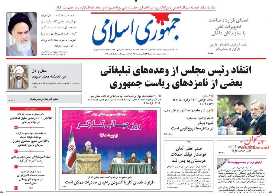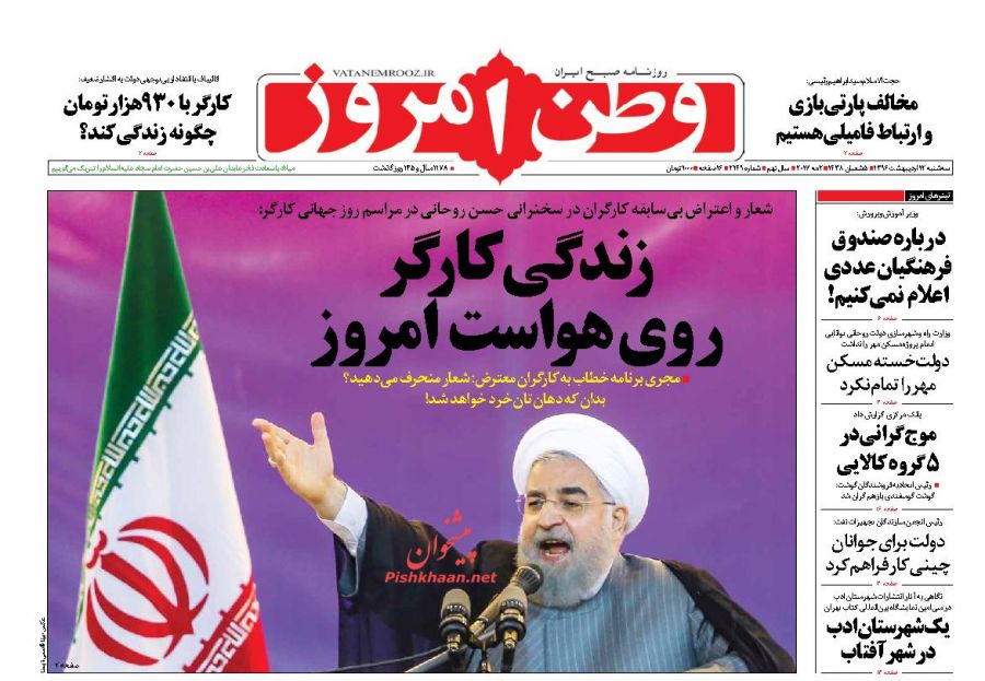 صفحه اول روزنامه های سهشنبه ۱۲ ارديبهشت