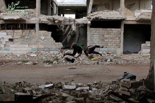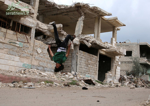 تصاویر/ پارکور دو جوان سوری در ویرانهها