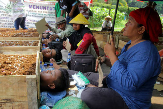گروهی از کشاورزان اندونزیایی که در اعتراض به اختلاف اراضی خود را به جاکارتا پایتخت اندونزی رسانده بودند در اقدامی نمادین خود را در زیر خاک دفن کردند. آنان اعلام کرده اند این اقدام تا زمانی که جوکو ویدودو رییس جمهور این کشور تصمیم روشنی اتخاذ کند ادامه خواهد داشت.