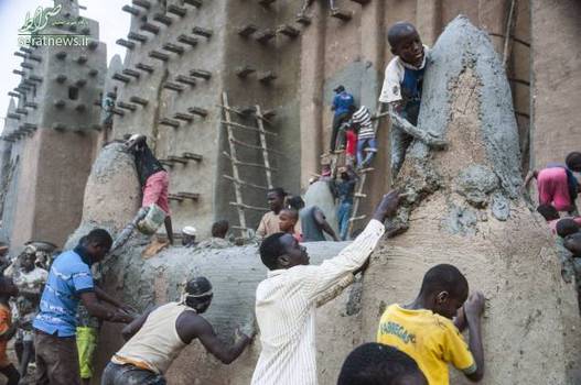 مسجد بزرگ جنه در جنوب کشور آفریقایی مالی که بزرگترین بنای خشت و گل در جهان و ثبت شده در میراث جهانی یونسکو است با حضور هزاران نفر از مردم بازسازی و ترمیم شد. همه ساله در چنین روزی هزاران نفر از زنان مردان و کودکان منطقه جنه مالی با جمع آوری گل و لای از کف رودخانه مجاور مسجد اقدام به بازسازی مسجد می کنند.  این مسجد در سال