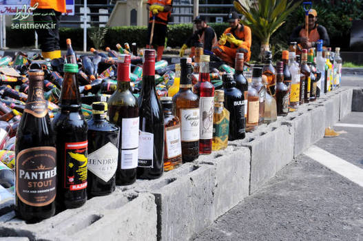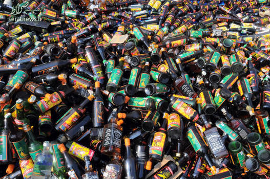 تصاویر/ انهدام هزاران شیشه مشروبات الکلی مقابل مسجد