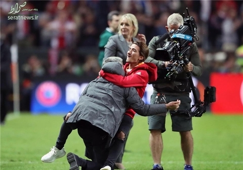 تصاویر/ شادمانی مورینیو با فرزندش پس از قهرمانی