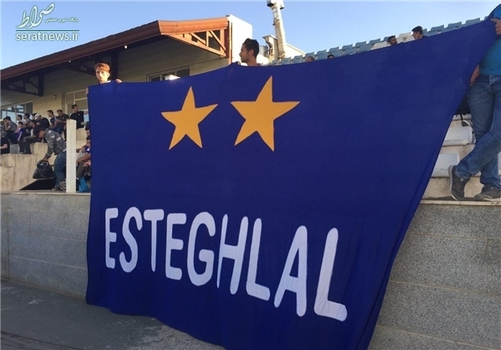 * چند نفراز هواداران استقلال امروز پرچم بزرگی را در دست داشتند و آن را روی سکوها پهن کردند.