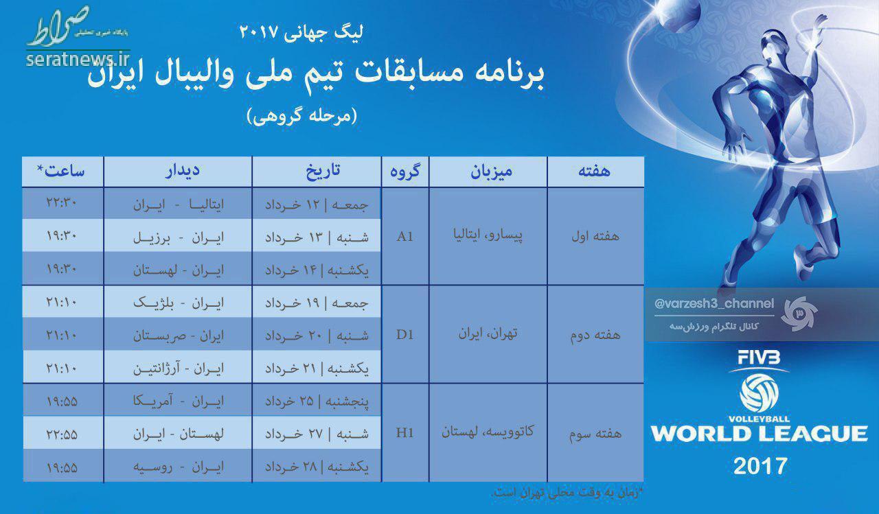 برنامه مسابقات تیم ملی والیبال ایران در مرحله گروهی لیگ جهانی